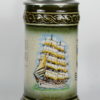 Как подарок для «морского» человека — просто изумительно. Прекрасно сохранившаяся винтажная кружка с изображением парусника «Gorch Fock». Также указаны его ТТХ. На донышке клеймо производителя — известнейшей компании GERZ, Германия. На оловянной крышке также есть клеймо. Полная высота кружки 17,5 см, вес 760 гр, ёмкость 0,55 литра.